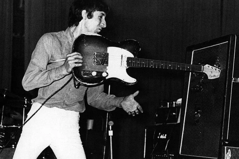 Townshend’s windmill strum began as a practical weapon for tiny clubs: volume, attack, and rhythm that cut like drums.